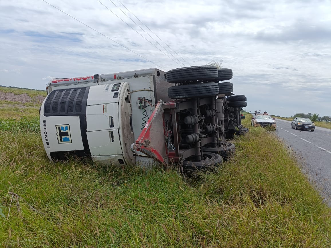 Al arribar al lugar de los hechos, elementos de Apoyo Carretero observaron un tractocamión volcado en un costado de la cinta asfáltica, no obstruyendo el flujo vehicular.