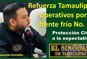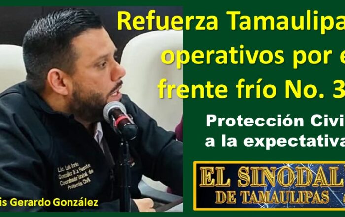 Por Julio Manuel Loya Guzmán/EL SINODAL DE TAMAULIPAS Cd. Victoria, Tamaulipas.— Ante el ingreso del frente frío número 33, que mantendrá bajas temperaturas durante las noches y madrugadas a lo largo de esta semana, el Gobierno de Tamaulipas reforzó los operativos de atención a personas en situación de vulnerabilidad, con el objetivo de prevenir casos […]