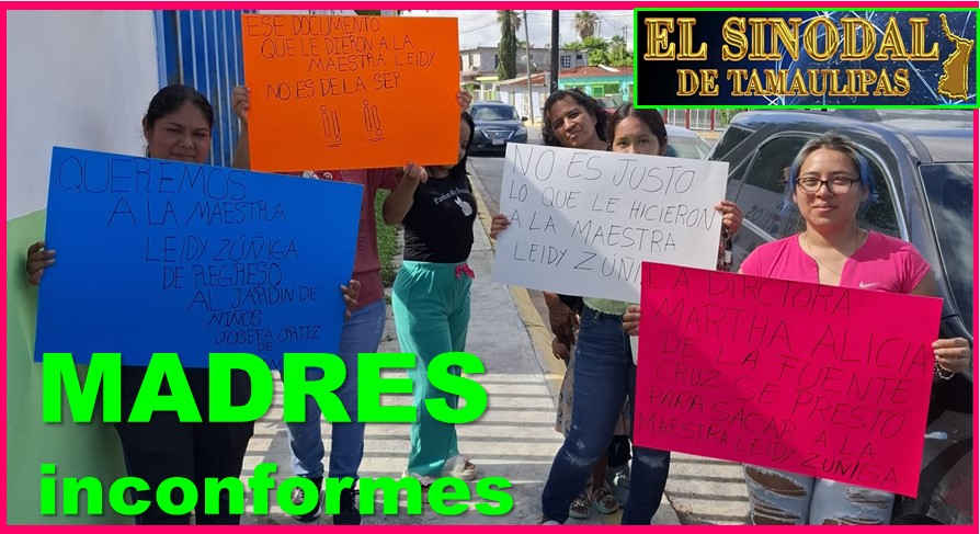 Reynosa, Tam.- Un grupo de madres de familia se presentaron con pancartas ante las oficinas de la inspección escolar 57, para exigir que la directora del Jardín de Niños, “Josefa Ortiz de Domínguez”, regrese a su aula a la maestra Reyna Leidy Zúñiga García.
