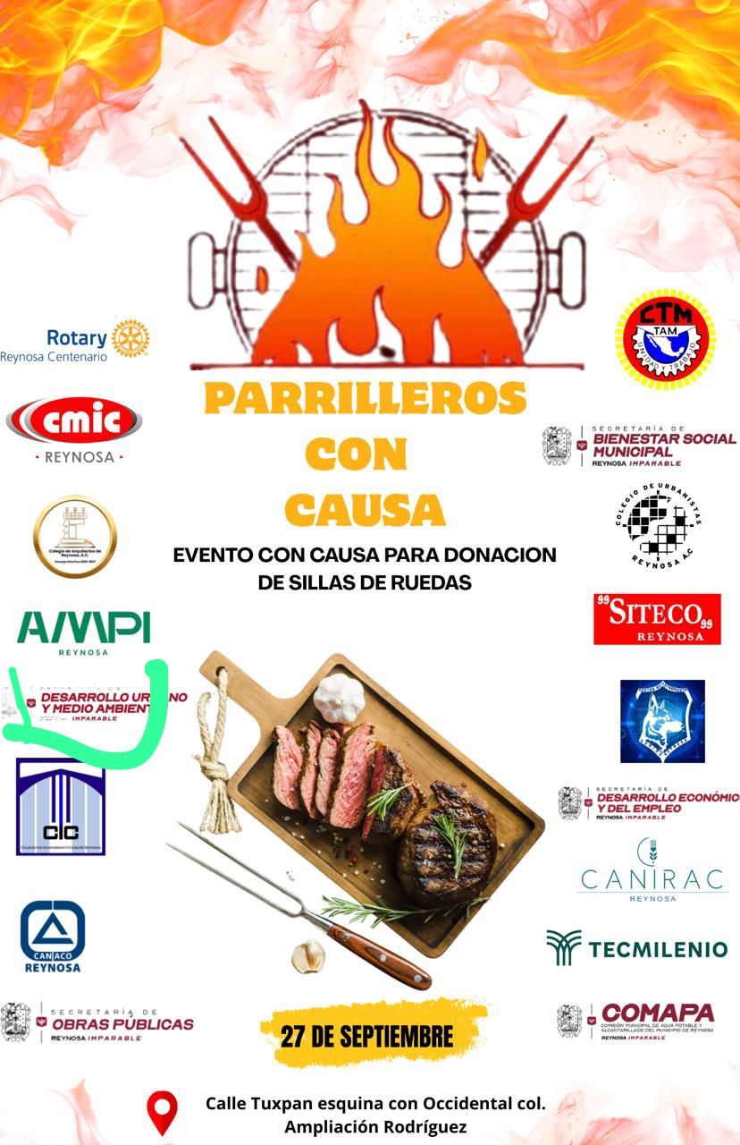 La CMIC, Rotary, CANIRAC, CANACO, TECMILENIO, COMAPA, Obras Públicas Reynosa, SITECO. AMPI, CTM, son entre otros los organizadores y patrocinadores del evento “Parrilleros con Causa”, dijo el de la FTR.