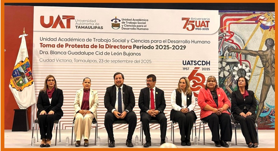 Teniendo como testigo de honor al gobernador Américo Villarreal Anaya, el rector de la Universidad Autónoma de Tamaulipas (UAT), Dámaso Anaya Alvarado, le tomó protesta a la nueva directora de la Unidad Académica de Trabajo Social y Ciencias para el Desarrollo Humano (UATSCDH), Dra. Blanca Guadalupe Cid de León Bujanos, quien asume el cargo para el periodo 2025-2029.