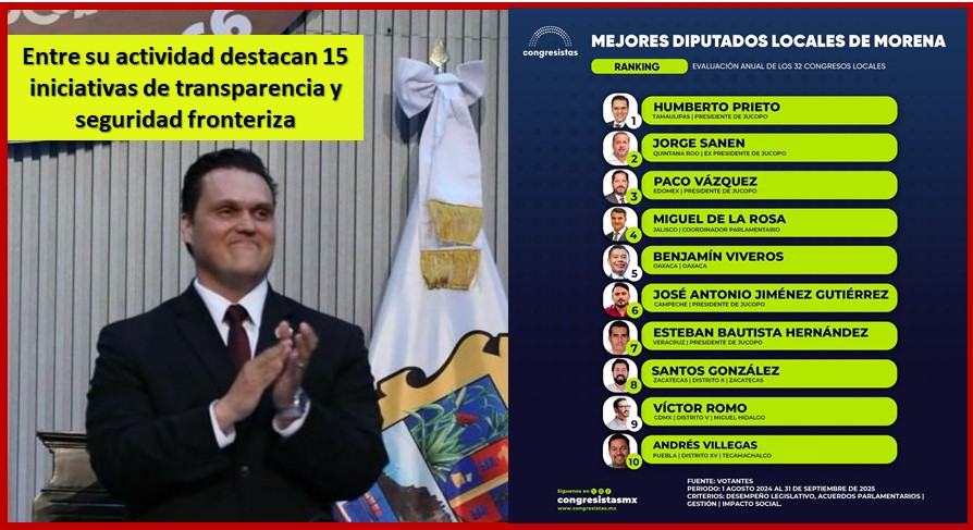 En la lista, entre los diez diputados locales mejor calificados, con el tamaulipeco, se cuentan cinco Presidentes de los órganos de gobierno legislativo, como tales, y otros cinco que se destacaron en el trabajo desarrollado respecto de sus distritos.