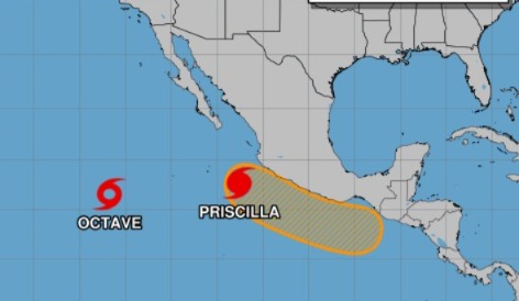 Al momento el huracán “Priscila”, se mantiene con vientos sostenidos de 140 kilómetros por hora y ranchas que van hasta los 170 kilómetros por hora, por lo que no se descarta que suba de categoría en las próximas horas.