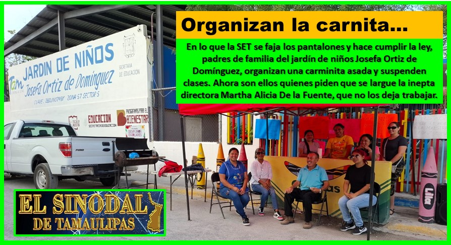 Ahora padres de familia se están organizando para una “carnita asada” y que el jurídico en ciudad Victoria, la propia Secretaría de Educación Tamaulipas e incluso el sindicato que titula el profe Arnulfo Rodríguez Treviño, tomen cartas en el asunto y apoyen la decisión de la inspectora.