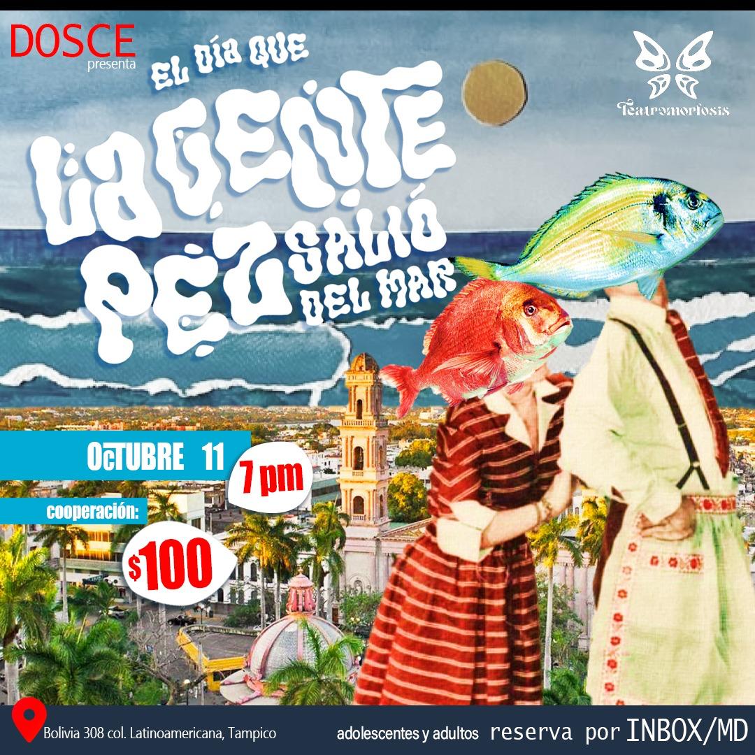 Cd. Mante, Tam.- La joven compañía teatral “Teatromorfosis”, llevara a ciudad Mante en única función a las 10 e la mañana, su gran espectáculo de calidad, en esta ocasión con la genial obra para adolescentes y jóvenes “El Día que la Gente Pez Salió del mar”.