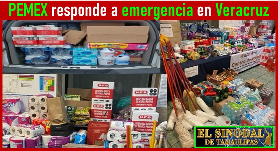 Personal de los diferentes centros de trabajo de Pemex en Tamaulipas, realizaron la donación y recolección de diversos artículos para ayudar a la comunidad de Poza Rica, afectada por el desbordamiento de ríos y arroyos, provocado por las lluvias intensas.