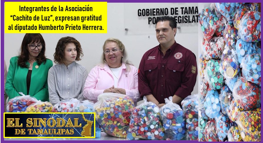 Victoria, Tam.- En el marco del Mes Rosa, dedicado a la concientización sobre el cáncer de mama, el Congreso del Estado realizó la entrega de taparroscas a la asociación civil Cachito de Luz, que brinda apoyo a personas en tratamiento de quimioterapia.