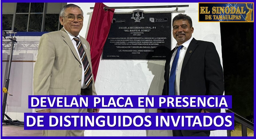 El director de la escuela, maestro Fernando Gallardo Guerrero, acompañado de su personal docente e invitados especiales, debelaron la placa alusiva al 50 aniversario del plantel educativo, 1975-2025.
