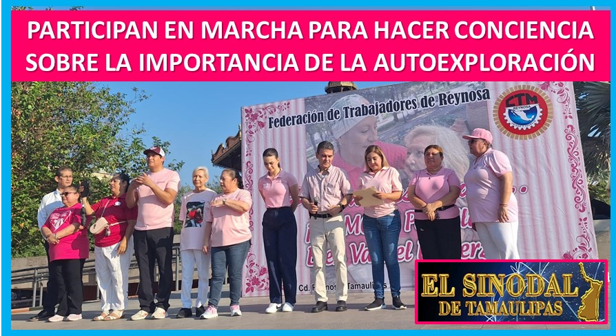 Trabajadoras sindicalizadas emitieron su mensaje con su presencia de que toda mujer mayor de 40 años, se debe auto explorar, tomarse mastografías al menos una vez al año, eso no evita el cáncer, pero si se detectas a tiempo, salva vidas.