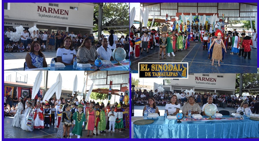 Reynosa, Tam.- Alumnos, docentes y padres de familia de la escuela primaria “NARMEN” que dirige el doctor Armando Sánchez Cano, organizaron una maravillosa y colorida ceremonia del 80 aniversario de la Organización de las Naciones Unidas.