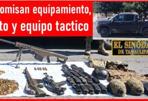 También fueron decomisadas tres armas largas, ocho cargadores calibre .223, cartuchos, cuatro chalecos balísticos color beige y un dispositivo de radiofrecuencia utilizado para monitorear.