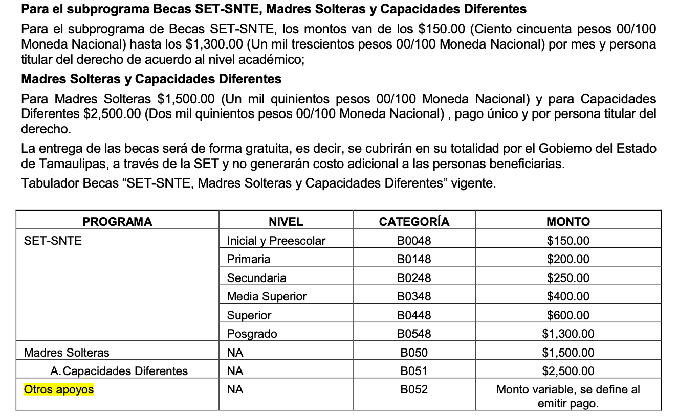 Una muestra de ello es el tabulador de montos que incluye el rubro Otros apoyos, donde no existe un monto mínimo o máximo a pesar de que el dinero utilizado para las becas SET-SNTE es público.