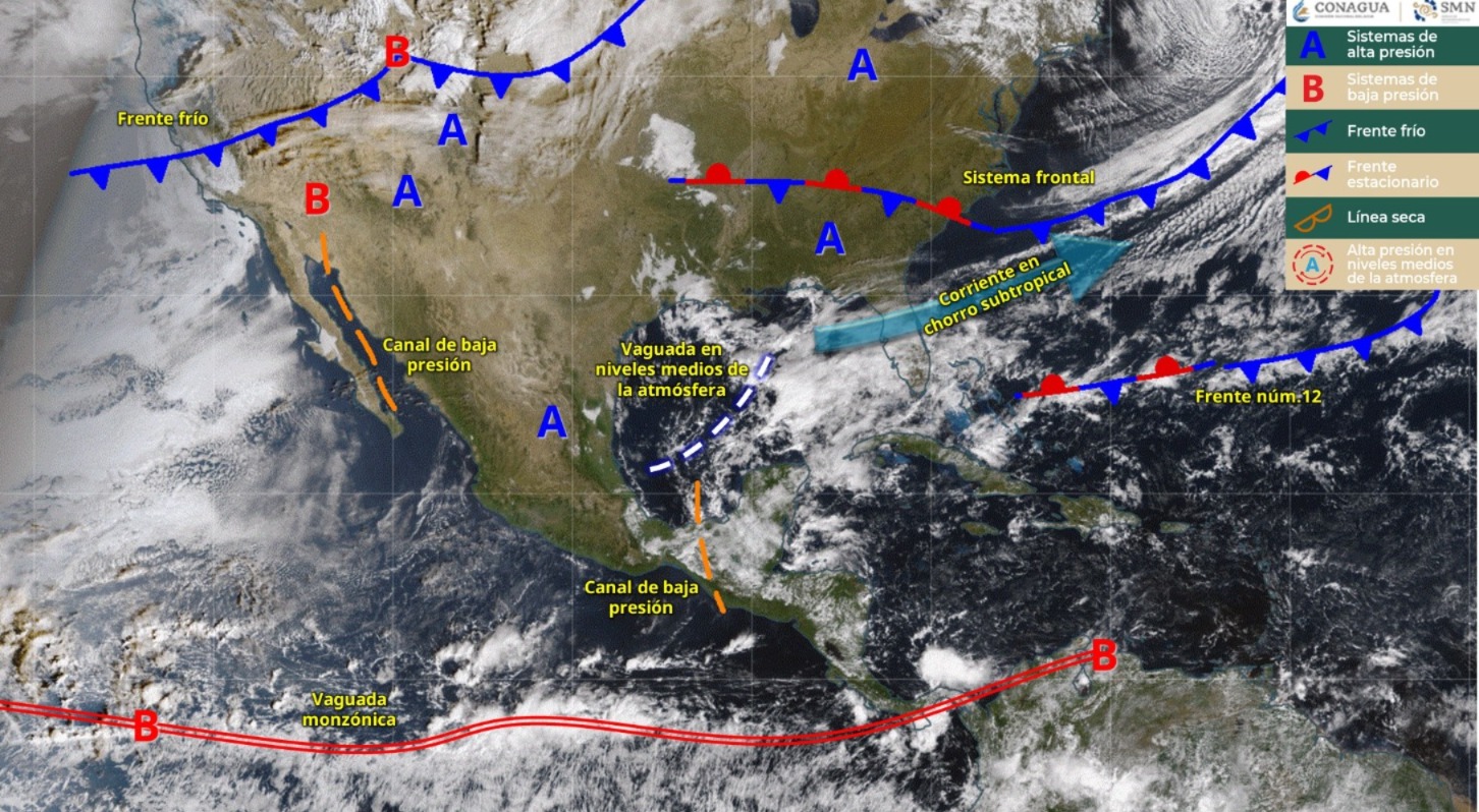 En estados del norte como Chihuahua y Durango, tendrán un registro de menos diez a cinco bajo cero en territorio serrano e intensas lluvias para el domingo en Veracruz, norte de Oaxaca, Chiapas y Tabasco.