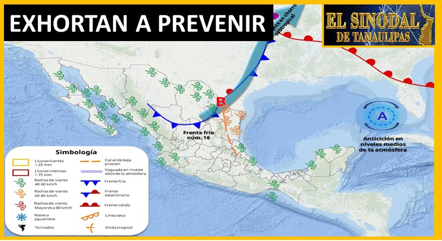 El pronóstico del SMN prevé que a partir del lunes 24 y hasta el miércoles 26 se presenten lluvias de distinta intensidad y temperaturas mínimas que podrían alcanzar valores bajo cero en zonas serranas del norte del país. En Tamaulipas, los efectos más severos se esperan para el miércoles 26, con lluvias fuertes a puntuales muy fuertes, acompañadas de posibles encharcamientos, crecida de ríos y deslaves en zonas de sierra.