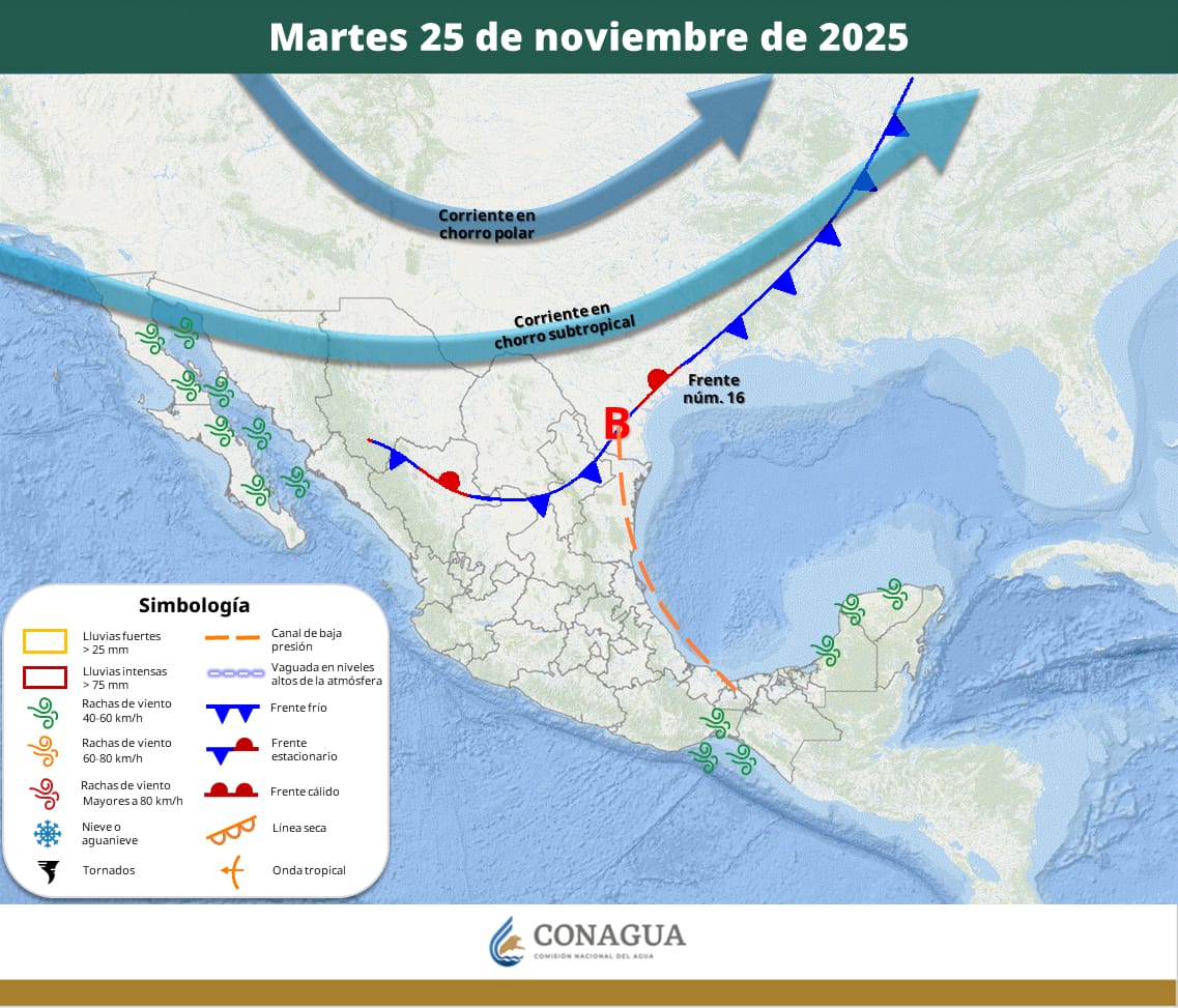 Para el martes 25, el SMN anticipa intervalos de chubascos en Tamaulipas, mientras que el miércoles 26 el estado será parte del corredor más afectado por lluvias intensas junto con Nuevo León, San Luis Potosí, Hidalgo, Puebla, Veracruz y Oaxaca.