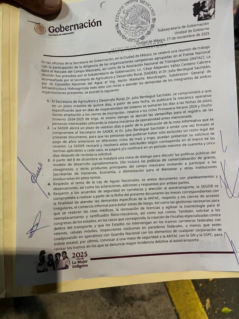 Un representante hizo el llamado luego de la firma con gobernación, agricultura e incluso con la CONAGUA, así que para más detalles este viernes se reunirán cada quien con sus representados y dar a conocer el acuerdo logrado.