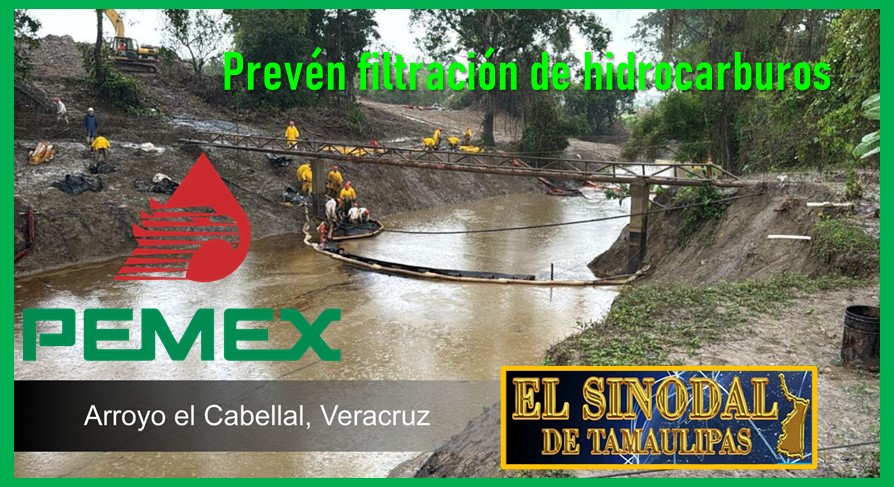Las lluvias afectaron a la zona del municipio de Álamo Temapache, por lo que, personal de Pemex, con el apoyo de compañías especializadas, reforzaron las barreras de contención instaladas en el arroyo El Cabellal, a fin de evitar el desplazamiento de trazas de hidrocarburo hacia el río Pantepec.