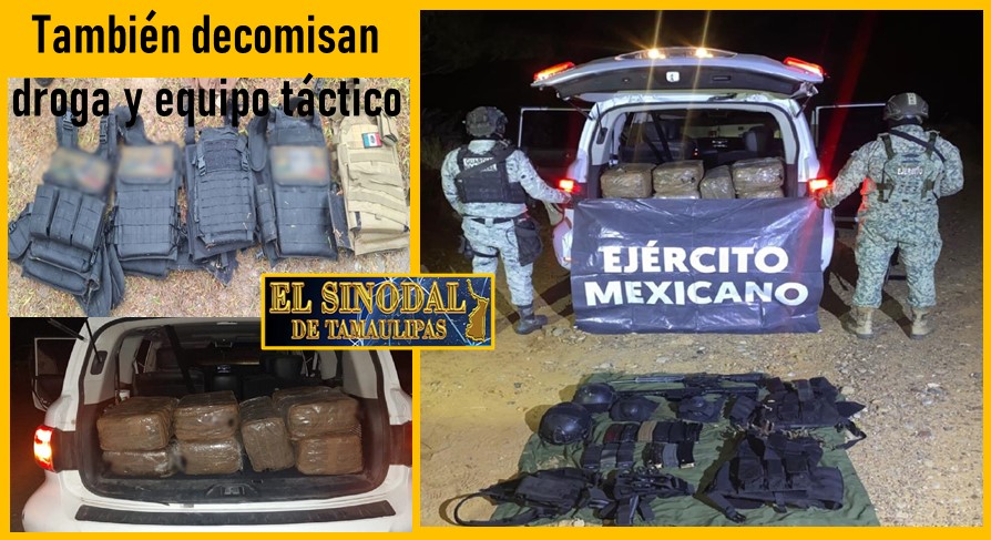 El Gabinete de Seguridad del Gobierno de México informó que, durante las acciones de la Operación Frontera Norte en Nuevo Laredo, las fuerzas federales decomisaron dos armas largas, 12 cargadores, 305 cartuchos útiles, 68 kilogramos de marihuana, dos chalecos tácticos y un vehículo.