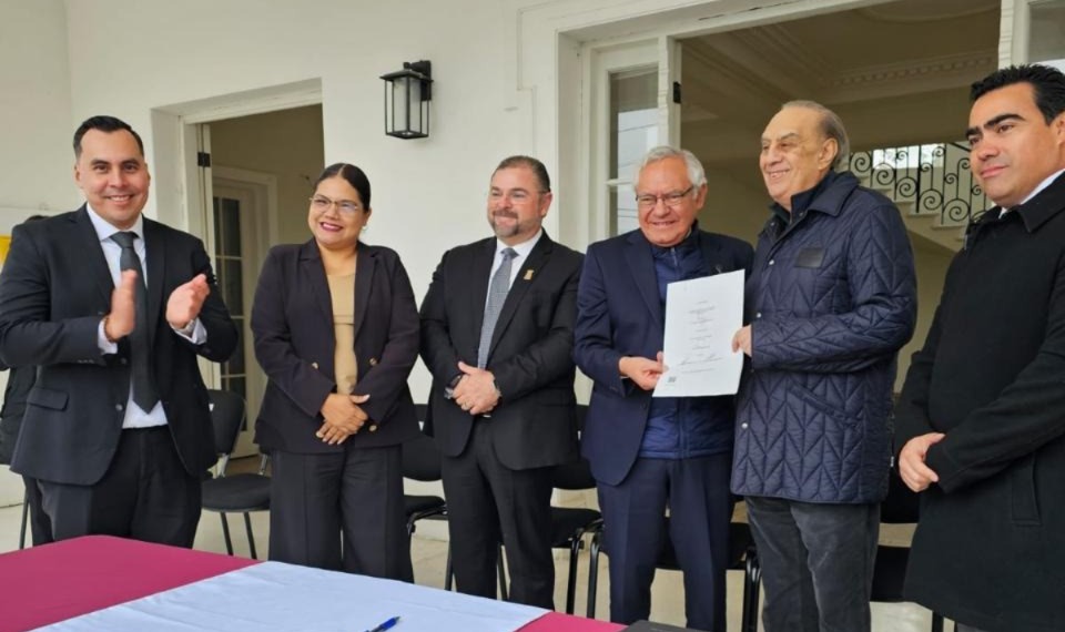 La visita del maestro Ramón Jiménez López y del director jurídico, maestro Antonio Andrés Pérez Méndez, fue para firmar documentos que le dan certeza jurídica al recibir una donación para construir más aulas al plantel de los “Hurones” de Linares.