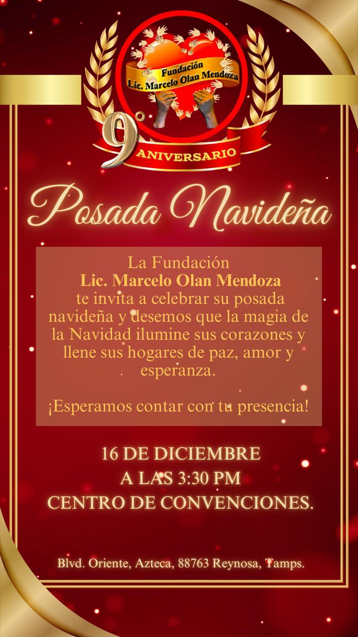 Reynosa, Tam.- Una gran cúmulo de sorpresas se esperan la tarde de este martes 16 de diciembre en que se celebrará la tradicional Posada Navideña de la “Fundación Marcelo Olán Mendoza, A.C”, misma que será engalanada con la presencia de la senadora de la República Olga Sosa Ruiz.