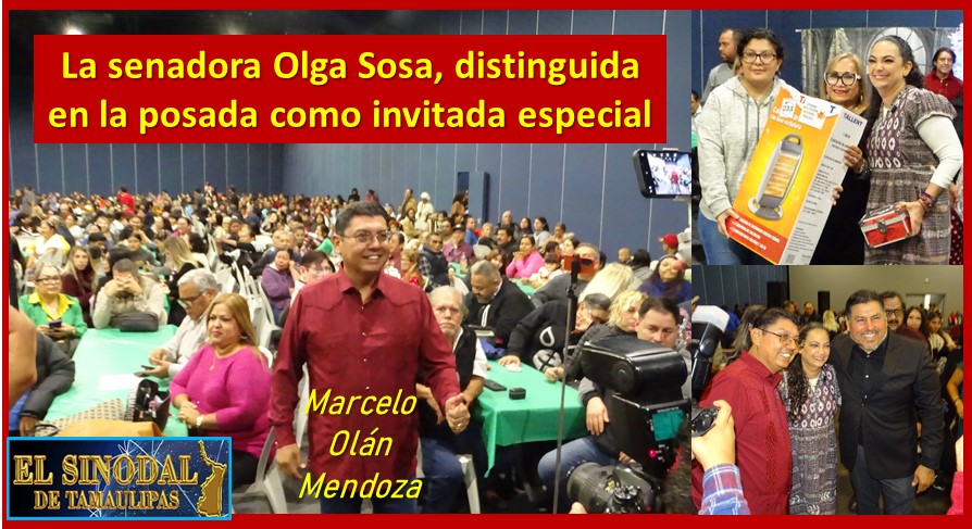 Reynosa, Tam.- Liderazgos de todo el estado encabezados por la Senadora de la República por Tamaulipas, Olga Sosa Ruiz, estuvieron entre la gran multitud formada por miles de asistentes a la 9ª. Posada Navideña de la Fundación Marcelo Olán Mendoza, A.C., que la tarde-noche de este martes 16 de diciembre. se llevó a cabo ante un lleno impresionante en el Centro de Convenciones del Parque Cultural de Reynosa.