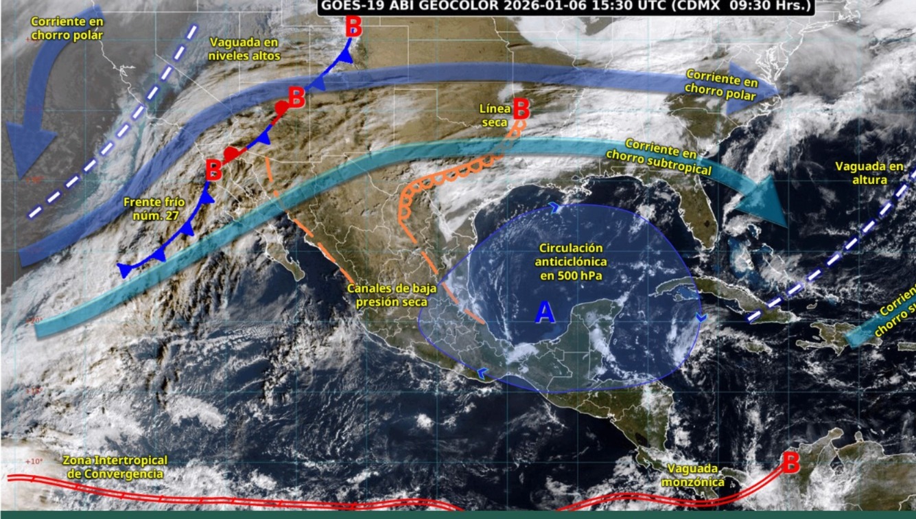 Reynosa, Tam.- Los estados de Baja California, Sonora y Chihuahua están bajo los efectos del frente frío 27 interactuando con corrientes en chorro polar y subtropical, ocasionara nevadas en zona alta de esas entidades.