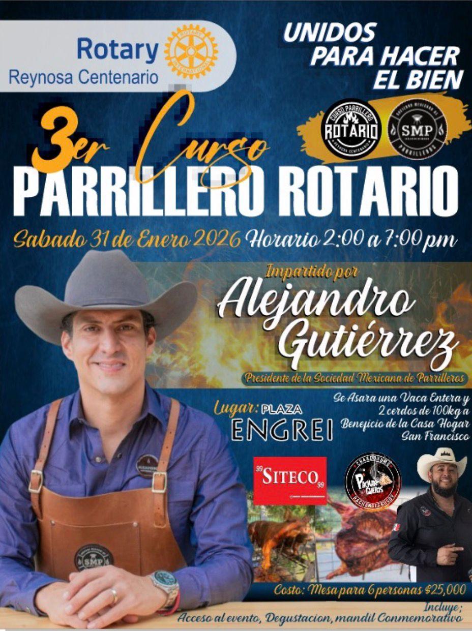 Reynosa, Tam.- Este viernes en punto de las dos y media de la tarde, se convoca a rueda de prensa en las instalaciones de la plaza “Engrei” para dar detalles del 3er curso a parrilleros, que será al día siguiente.