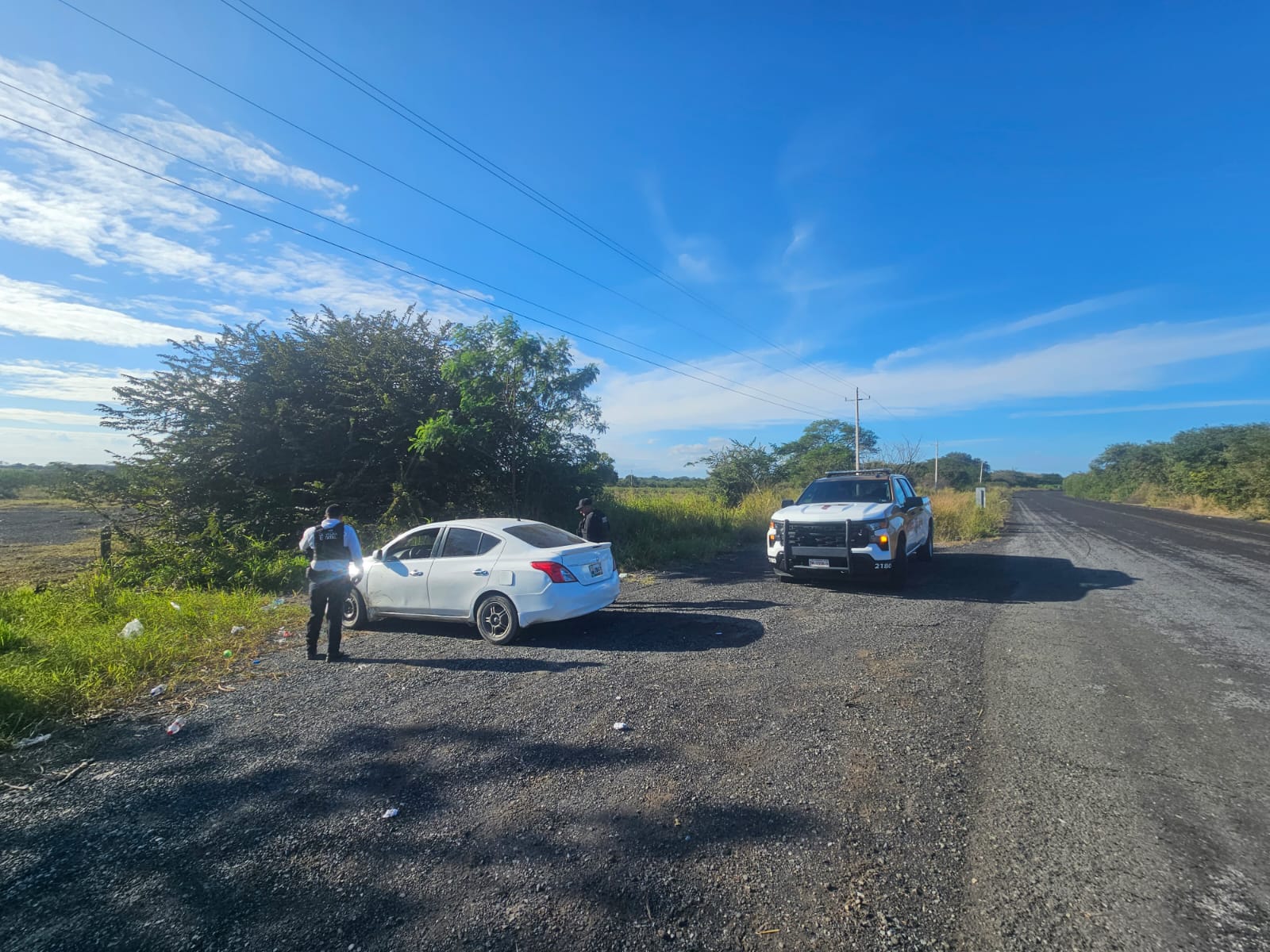 El hallazgo se registró en el kilómetro 11, donde los agentes detectaron un automóvil Nissan Versa color blanco, sin ocupantes, estacionado a un costado de la carpeta asfáltica.