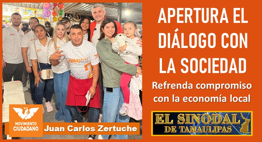Reynosa, Tamaulipas. El diputado local de Movimiento Ciudadano, Juan Carlos Zertuche, realizó un recorrido por el Tianguis Puerta del Sol, donde convivió de manera cercana con comerciantes y familias que acudieron a realizar sus compras, reafirmando su compromiso con la economía local y el bienestar de las colonias de Reynosa.