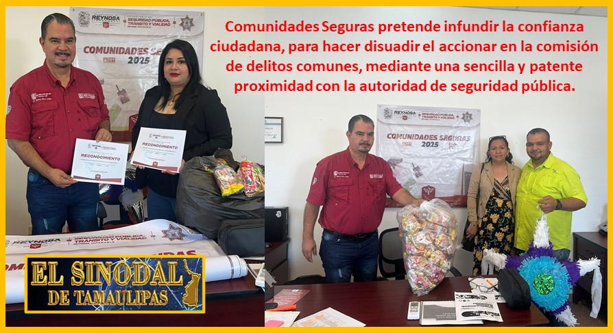 Reynosa, Tam.- Reynosa, continúa fortaleciendo la seguridad en sus colonias gracias al programa Comunidades Seguras, impulsado por la Secretaría de Seguridad Pública que encabeza el Lic. Giovanni Barrios Moreno y ejecutado por el Lic. José Federico Pérez Lozano, director de Enlace Social de la dependencia.