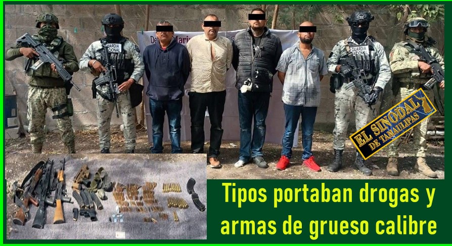 La detención se efectuó en el poblado Estación Manuel, en el municipio de González, donde los ahora vinculados se desplazaban a bordo de un vehículo en el que fueron localizadas diversas sustancias ilícitas y armamento de alto poder.