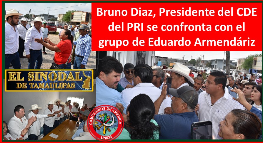 Llego el dirigente de la Liga de Comunidades Agrarias con el delegado, Juan Cantú Alvarado, el presidente estatal del PRI, Bruno Díaz quien fue encarado por comisariados ejidales, “yo le atoro con quien quiera y como quieran”, -les gritó-.