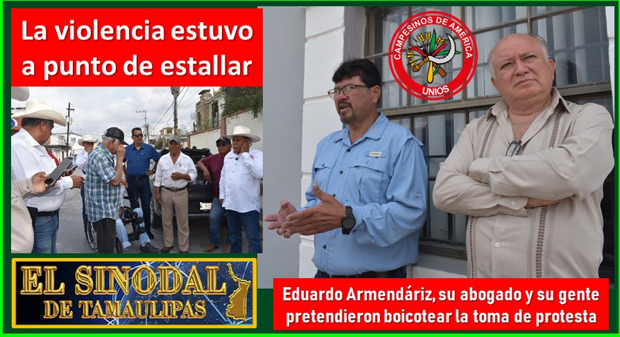 Atrás se vio a Benito Sáenz, presidente del PRI Reynosa seguido por varios militantes de ese instituto político; al ingresar a los patios del comité ejidal, Gabriel Armendáriz y un reducido grupo de comisariados, trataron de impedir el acceso al grupo de Javier Garza Sosa.
