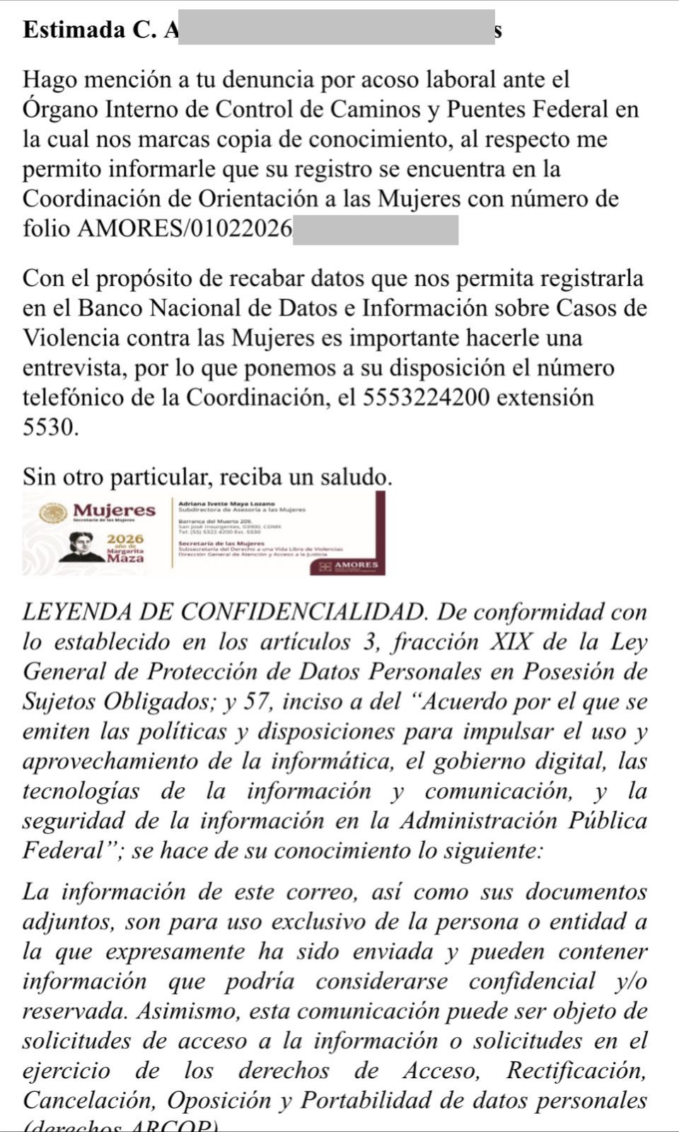 La explicación era darle una idea de porque el “endiosamiento” del Gerente de la Unidad Regional Reynosa y al parecer de otros funcionarios en niveles Jerárquicos más arriba, en Oficinas Centrales y en el Órgano Interno de Control de CAPUFE perteneciente a la Secretaria Anticorrupción y Buen Gobierno del Gobierno Federal, al menos ha dicho y lo que vocifera el chacalezco ING. LUIS MANUEL LASTRA GARCIA y al no ver respuesta ni apoyo de ningún área al interior de la Unidad Regional Reynosa, esto por la protección y el bloqueo que CAMPOS SANTOS COY, ejerció sobre el Área de Recursos Humanos y el Jurídico, cuando se atrevió la Joven Ingeniera a presentar una queja por escrito dirigida a las autoridades superiores.
