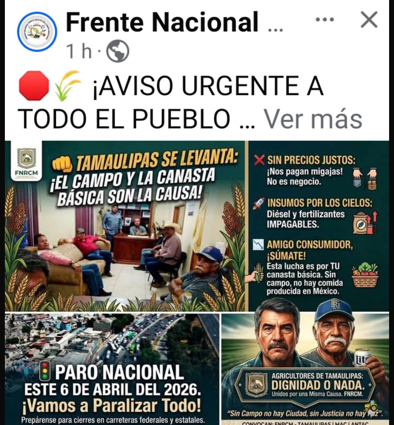 En Tamaulipas, agricultores unidos y con todo en este llamado nacional ante precios injustos, insumos altísimos, por ende, la canasta básica de millones de familias, está por las nubes.