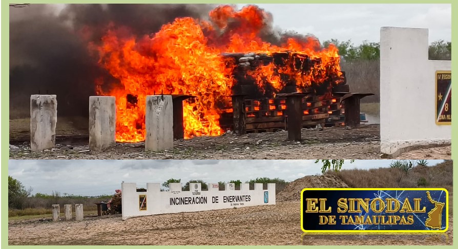 Reynosa, Tamaulipas.– Personal de la Guardia Estatal participó en la incineración de diversos enervantes en las instalaciones del 19.º Regimiento de Caballería Motorizada, en Reynosa.