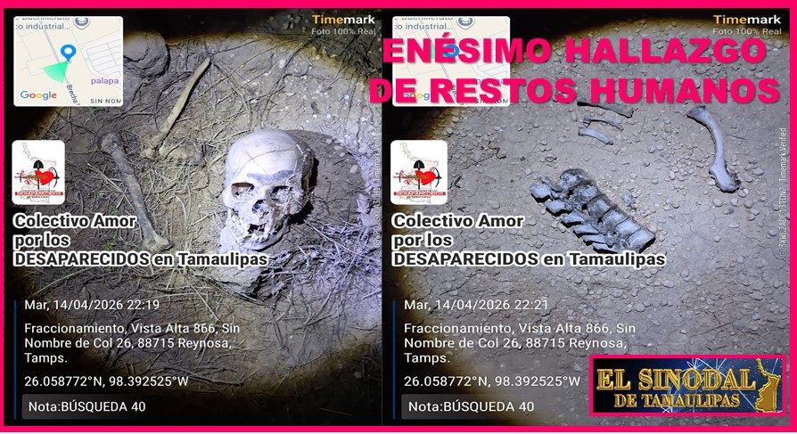 Cd. Victoria, Tamaulipas.— Una osamenta humana fue localizada por integrantes del Colectivo Amor por los Desaparecidos en una zona despoblada de la colonia Vista Alta, en la periferia suroeste de Reynosa, lo que eleva a 15 los hallazgos realizados es por este grupo durante el presente año.