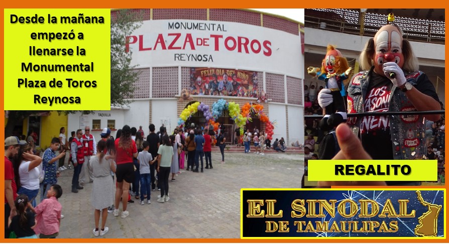 El amplio escenario de la Plaza de Toros Monumental de Reynosa, resultó prácticamente insuficiente para dar cabida a los mas de seis mil niños y mas de mil quinientos adultos que se apretujaron para disfrutar de la fiesta que ofreció la dirigencia sindical encabezada por el diputado y líder nacional Alberto Lara Bazaldúa.